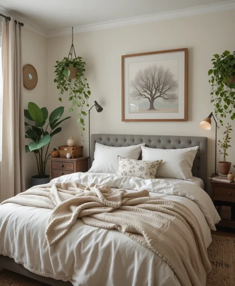 Adding indoor plants brings life, freshness, and warmth to your bedroom. Choose low-maintenance plants like pothos or snake plants for natural beauty that requires little care.