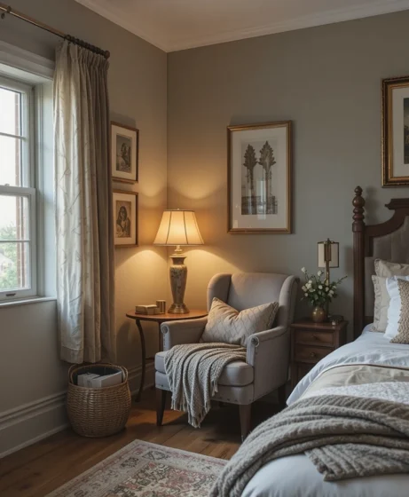 A small corner with a comfortable chair, a throw blanket, and a lamp can become your personal relaxation spot. It adds warmth to the room while giving you a peaceful place to unwind Cozy Bedroom Ideas.