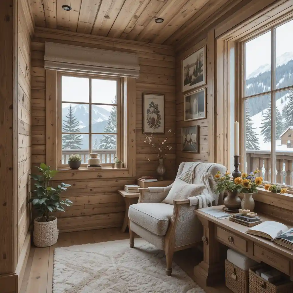 Create a reading corner with a comfy chair, throw blanket, and nearby window—ideal for quiet moments that reflect alpine serenity. Alpine Décor Design