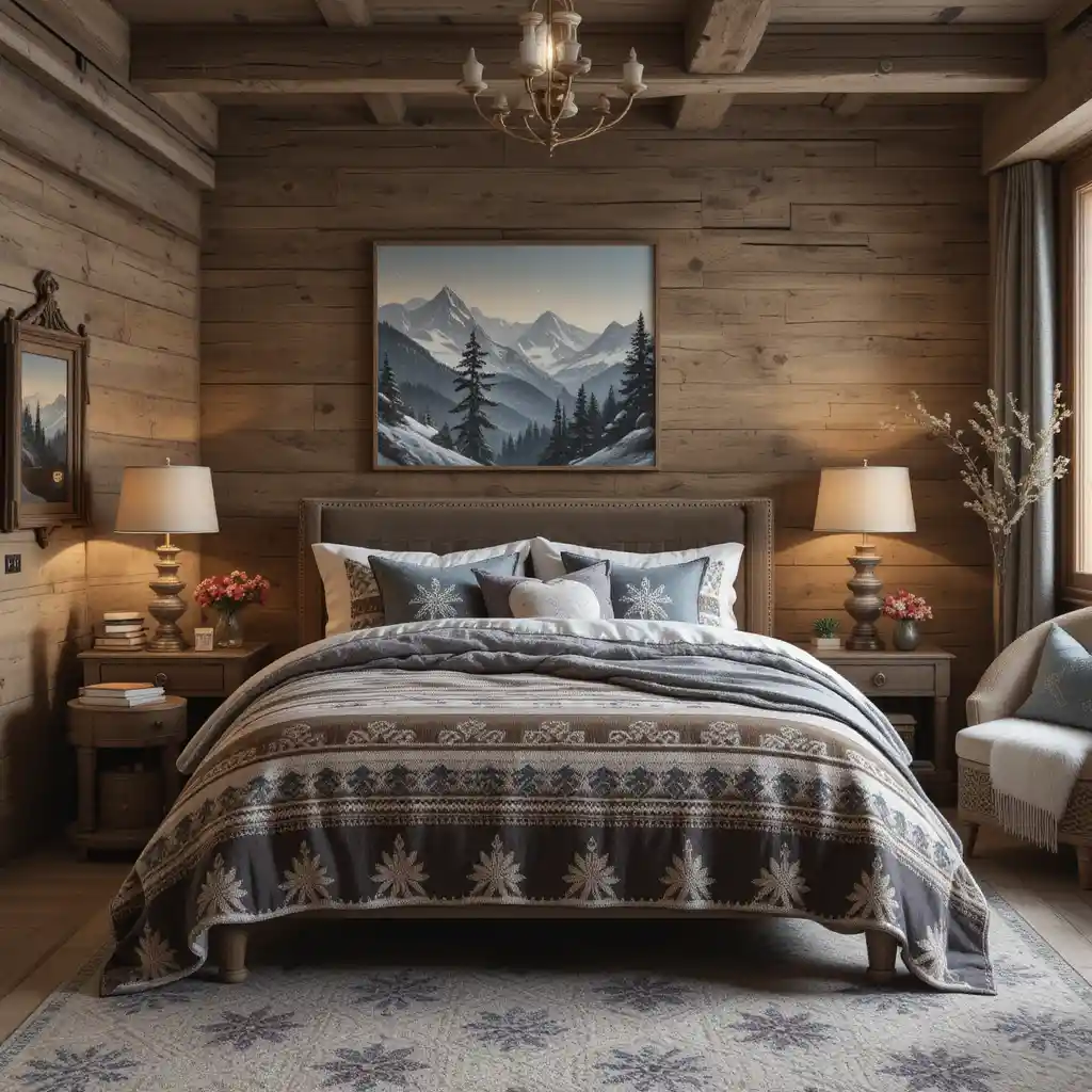 Choose bedding with snowflake motifs, Scandinavian patterns, or cozy textures like flannel and down to make your bedroom a winter haven. Alpine Décor Design
