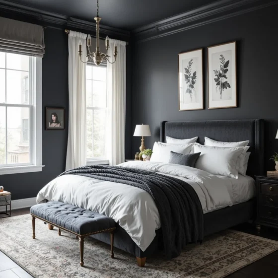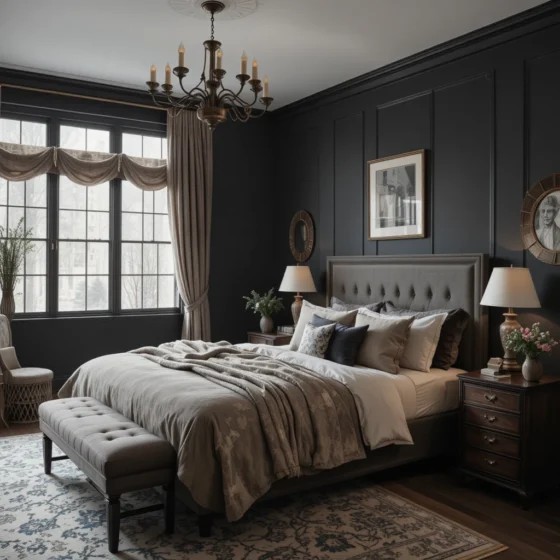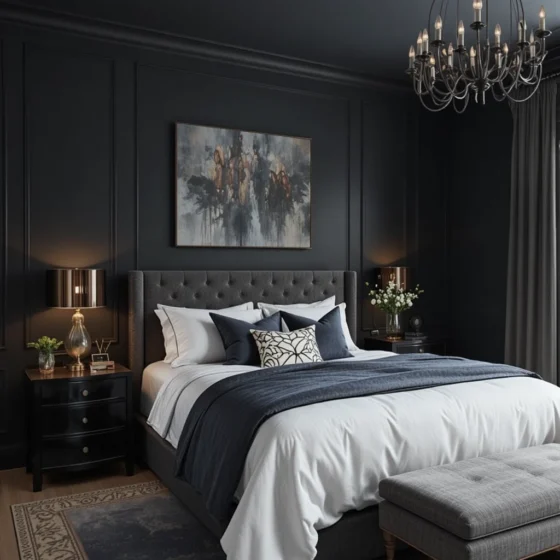 Paint your walls in charcoal gray for an instantly luxurious and cocoon-like effect. Pair it with soft white bedding or metallic accents to add depth without overwhelming the space Dark & Dreamy Bedroom.