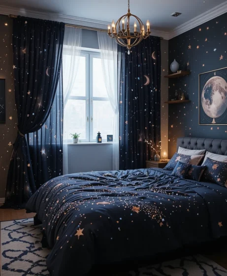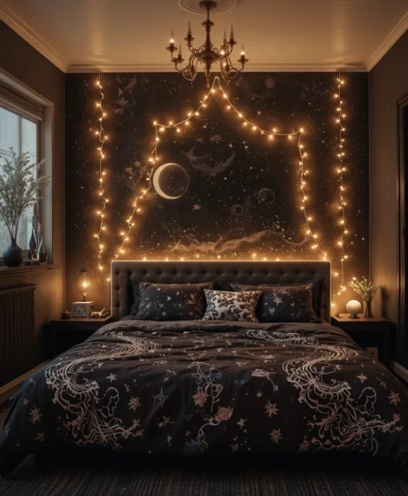Creating a dark celestial bedroom is one of the most enchanting ways to transform your space into a magical escape.
