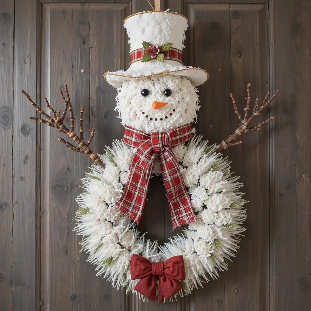 Stack three mini wreaths together to form a snowman shape, adding a scarf, buttons, and a hat. It’s a whimsical and family-friendly option. DIY Christmas Wreaths