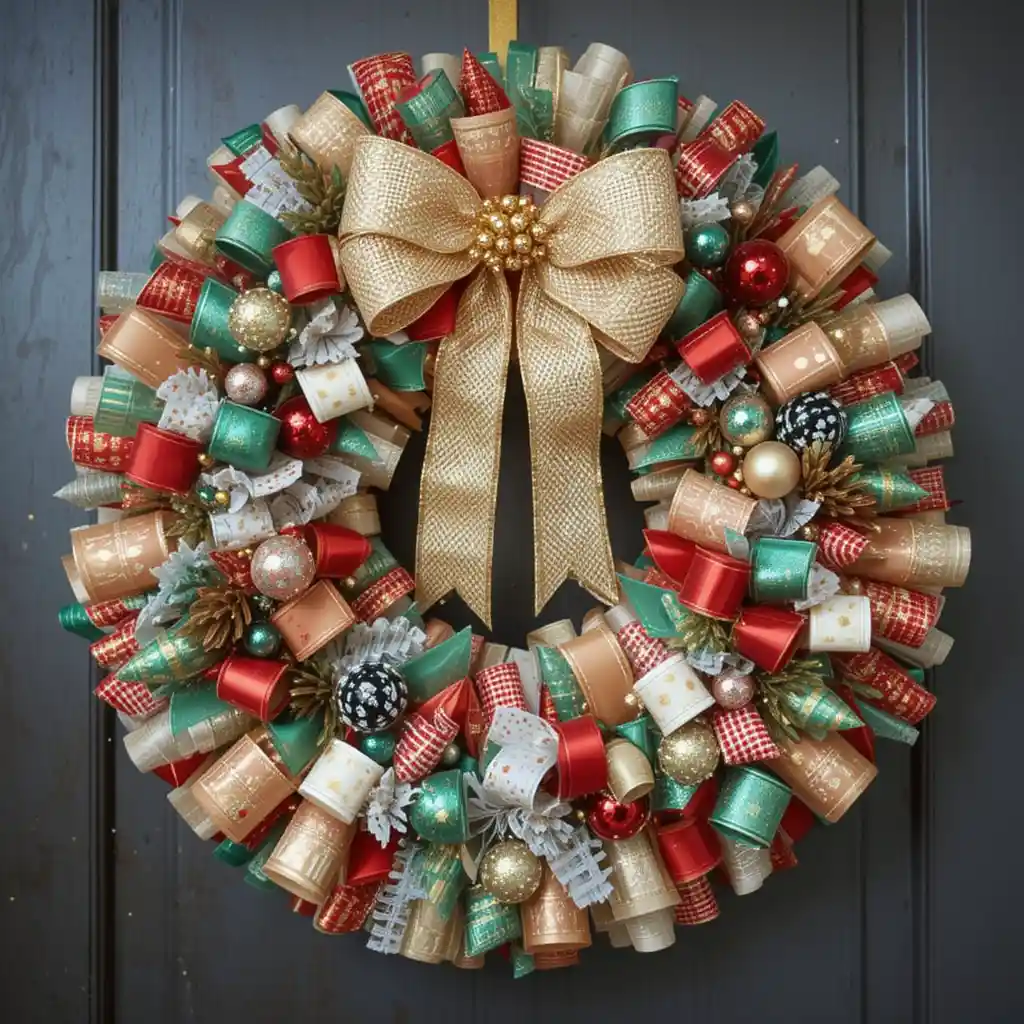 Layer ribbons in festive colors like red, gold, and green to form a fluffy, full wreath. Top it with a large bow for extra drama. DIY Christmas Wreaths