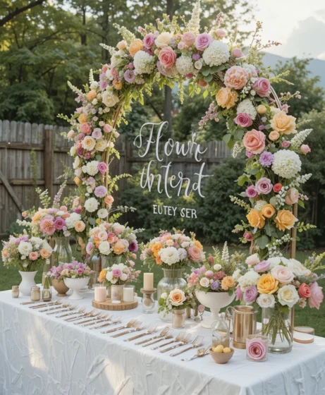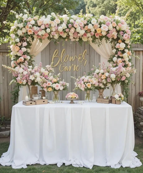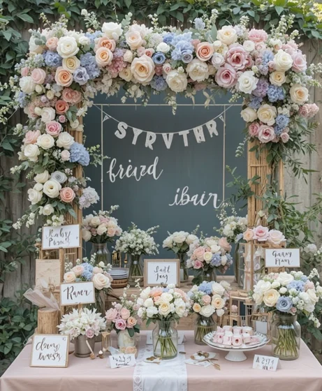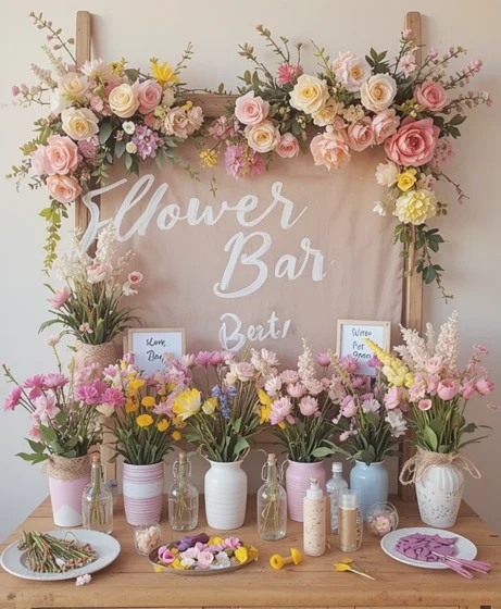 Choose soft blue, pink, or neutral baby-friendly tones. Add small decorative signs with sweet messages. This thoughtful DIY Flower Bar enhances the celebration atmosphere.