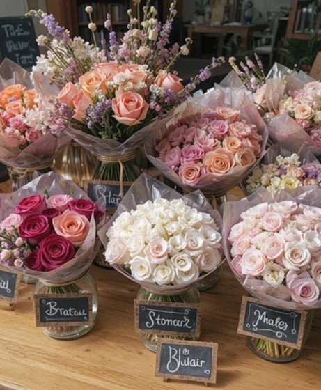 Label each flower type with small chalkboard signs. This adds organization and charm. Guests appreciate knowing the flower names while building bouquets.