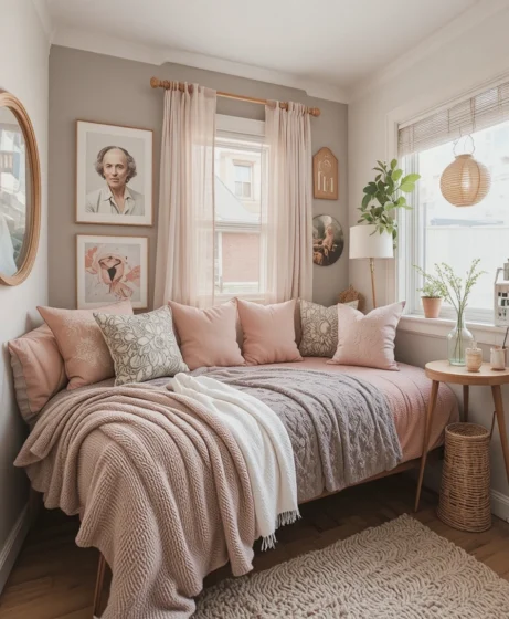 Mix materials like velvet, knit, cotton, and faux fur. Layer throw blankets and pillows in complementary colors. Textures add visual depth to a small space and make the dorm feel warmer and more personal. Keep tones soft for a calm atmosphere.