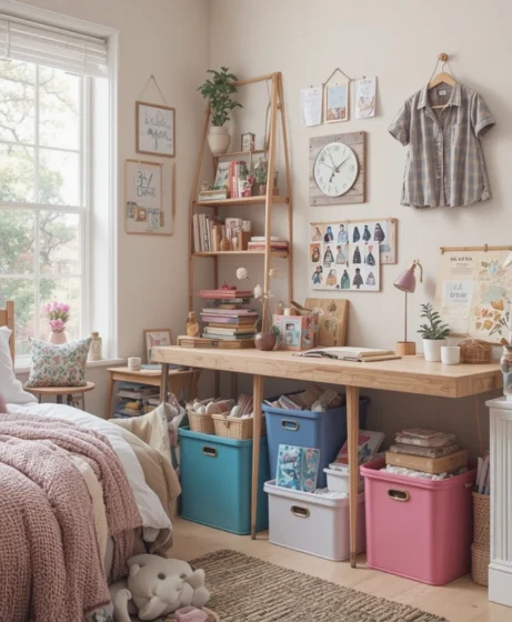Choose storage bins in a consistent color scheme. Whether in neutrals or bright tones, coordinating bins keep the room visually cohesive. Use them for accessories, snacks, and toiletries. This keeps the dorm organized without sacrificing style.