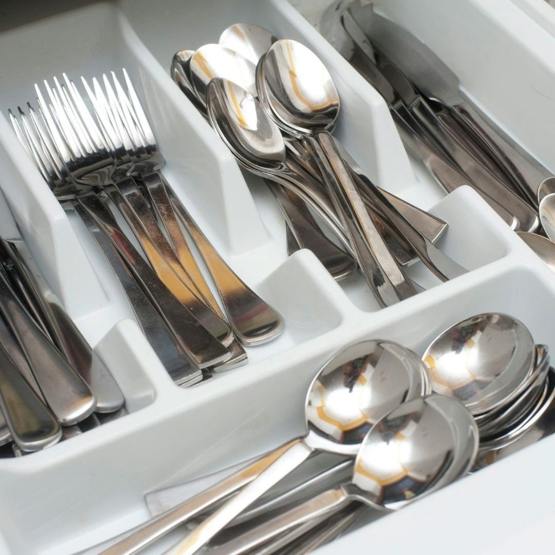 Add small labels inside the drawer or on separators — Forks, Spoons, Measuring Cups, etc. Labels help everyone in the household return items to the right place and keep the system working.