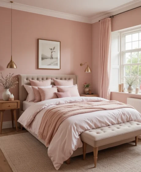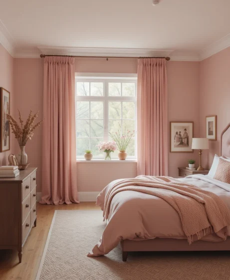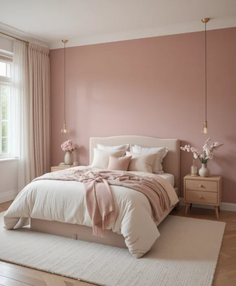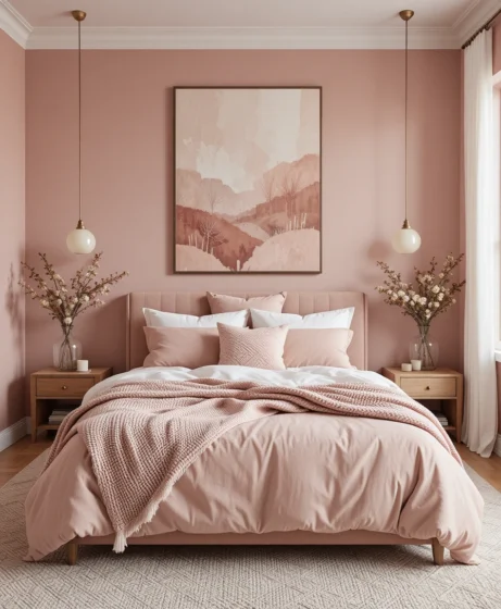 Unlike bright pinks, earthy pink shades feel grounded and timeless, making them perfect for bedrooms in 2026 and beyond.