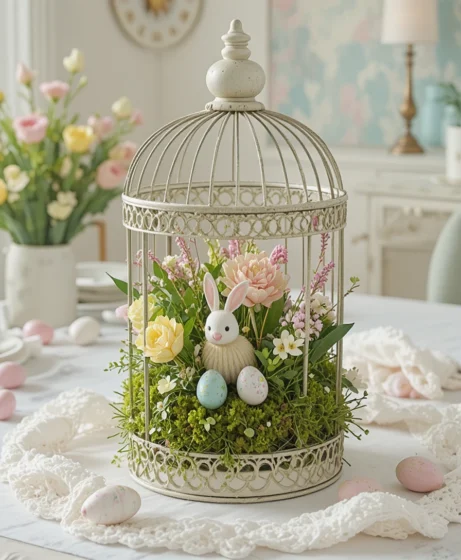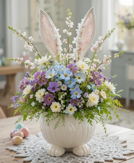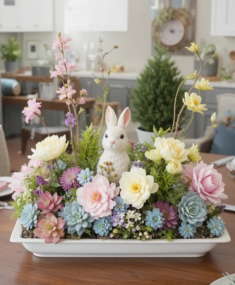 Use a bunny-shaped planter filled with pansies or petunias. It adds a playful and festive Easter vibe to your home.