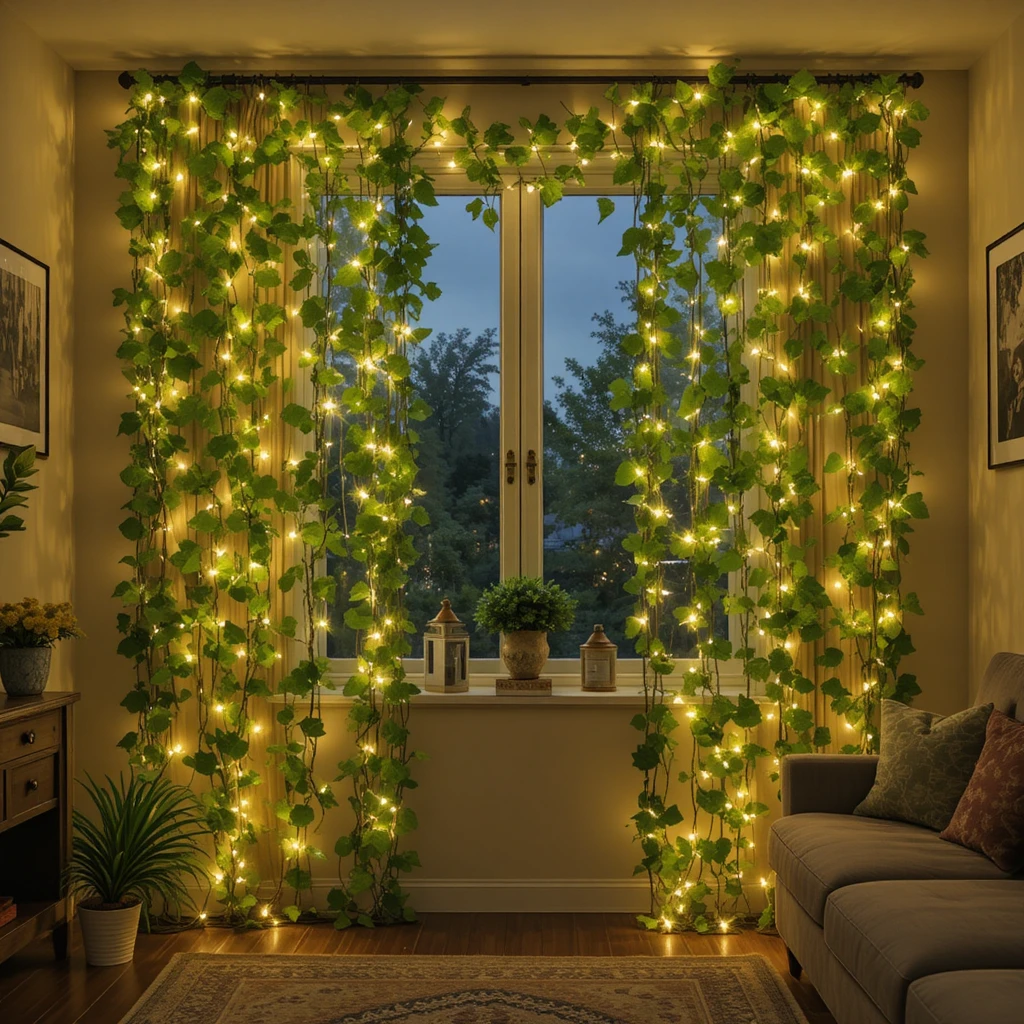 Place leaf light curtains near your doorway or entrance wall to greet guests with warmth and greenery. It instantly makes your home feel inviting and lively.