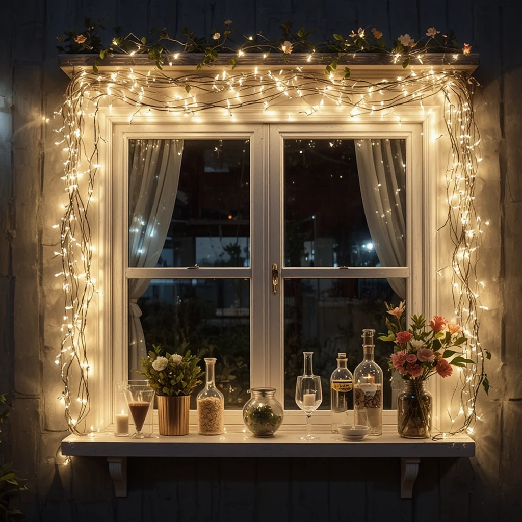 Wrap fairy lights around window frames to brighten the view and add nighttime charm. The twinkling reflections make your home feel magical inside and out. Fairy Lights Decor