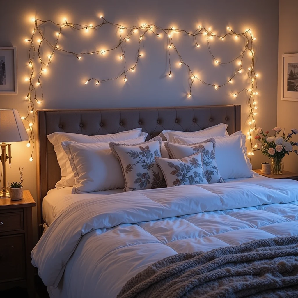 Add fairy lights behind or above your headboard to create a soft and dreamy bedroom look. This decor trick instantly transforms your sleeping area into a cozy retreat.