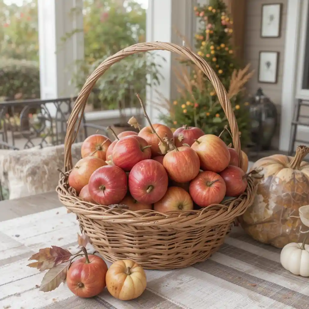 Fill a large basket with fresh red apples and place it on an outdoor table. It’s not only decorative but also functional for snacking during gatherings.