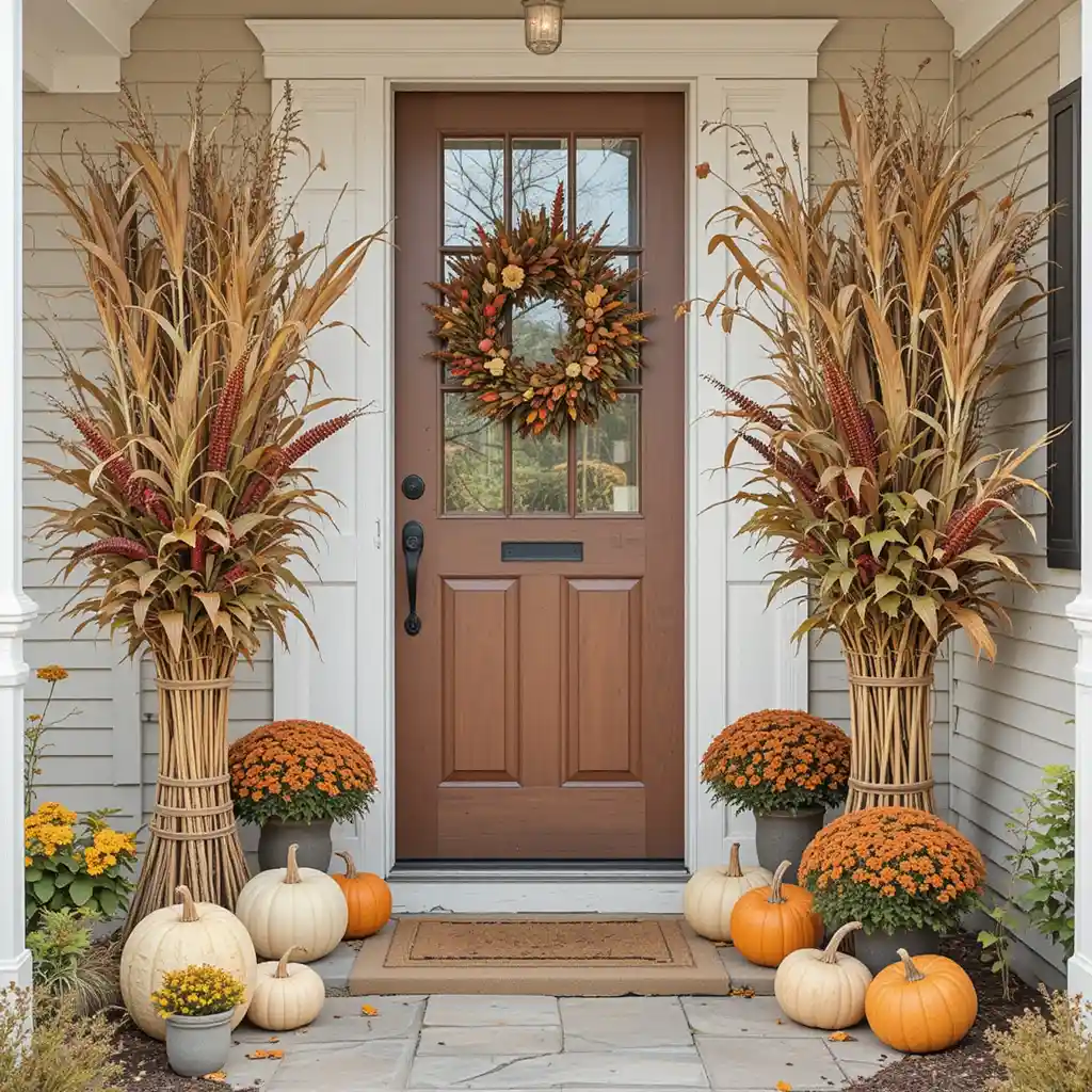 3. Cornstalk Bundles Around the Doorway