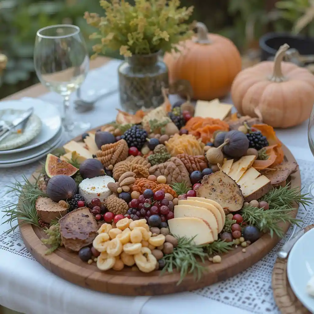 Serve a seasonal charcuterie board filled with figs, nuts, cranberries, and aged cheeses. Display it on a wooden board for a stunning and delicious focal point.