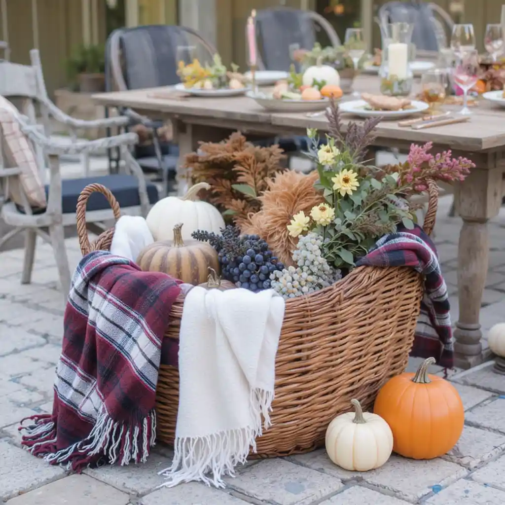 Place a large basket filled with soft plaid blankets near your seating area. Your guests will appreciate the extra layer of warmth as the evening cools down.
