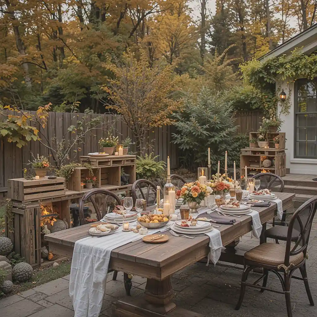 Stack wooden crates to create varying heights for food platters, drinks, or candles. This adds visual interest and makes use of vertical space beautifully. Fall Outdoor Dinner Party Ideas