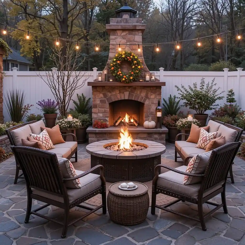 Add layers of throw pillows in various sizes and textures to your outdoor seating. Think velvet, flannel, or cable-knit to instantly make your space more inviting.