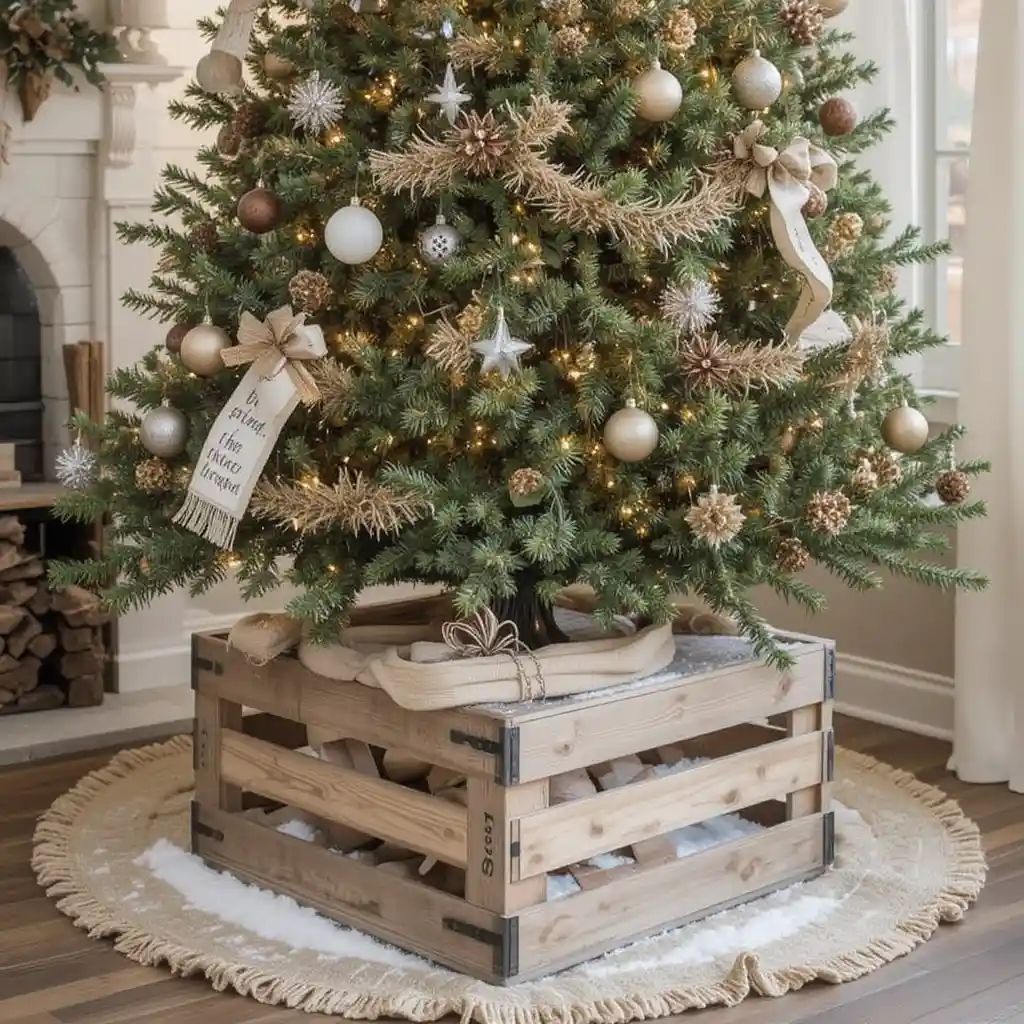 25. Rustic Crate Tree Base