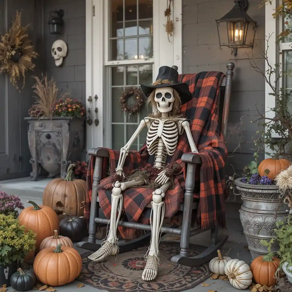 Place a rocking chair on your porch and add a skeleton or scarecrow sitting in it. Drape it with plaid blankets for cozy spookiness.
