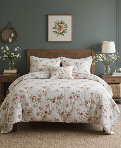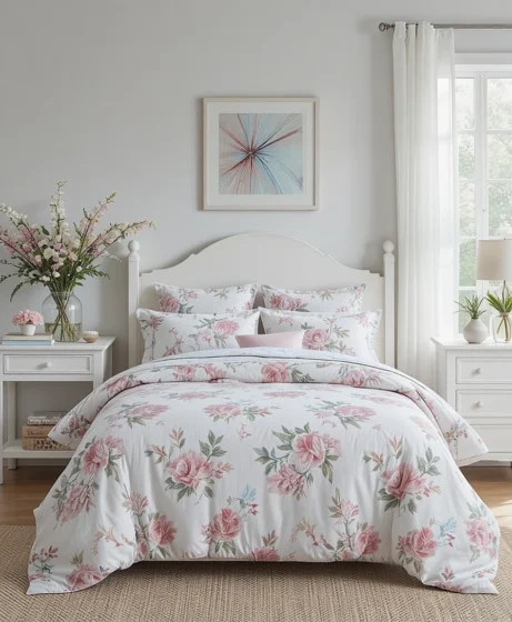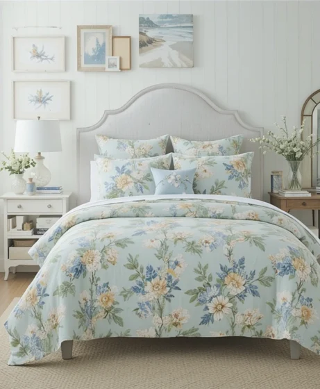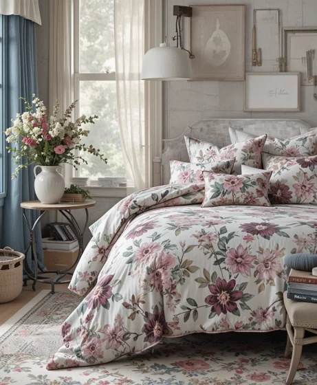 Lightweight floral bedding in bright spring shades instantly refreshes your space after winter. Think fresh greens, soft pinks, and airy fabrics that promote comfort and brightness.