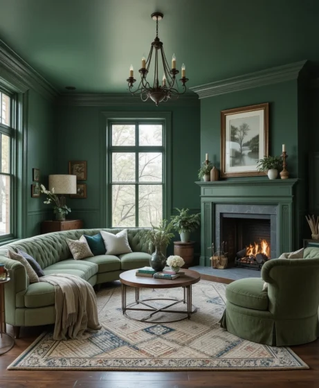 A bold, rich forest green that brings depth and sophistication to living rooms Forest Green Paint Colors.