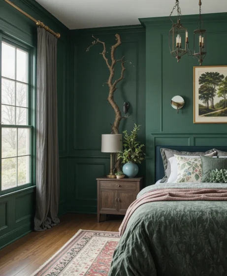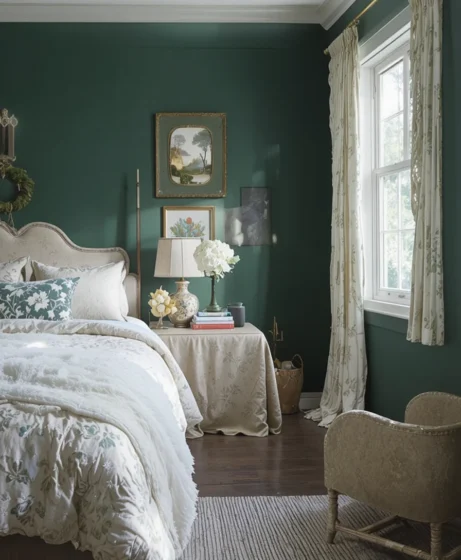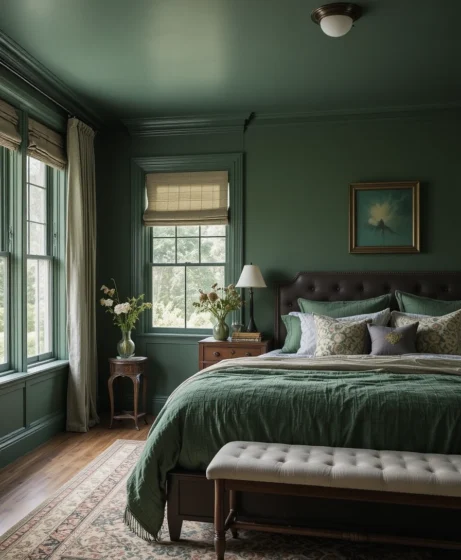 Dark, dramatic, and elegant — perfect for bedrooms needing warmth Forest Green Paint Colors.