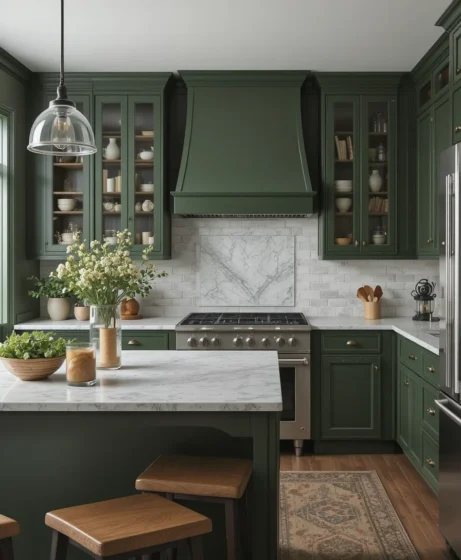 4. Classic Hunter Green Kitchen Cabinets