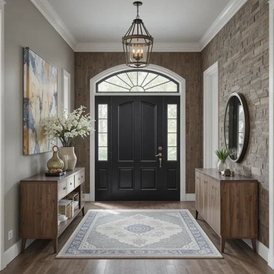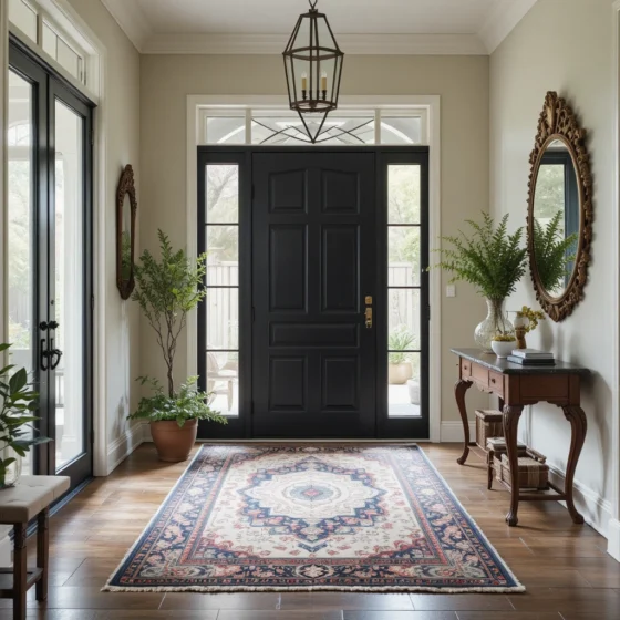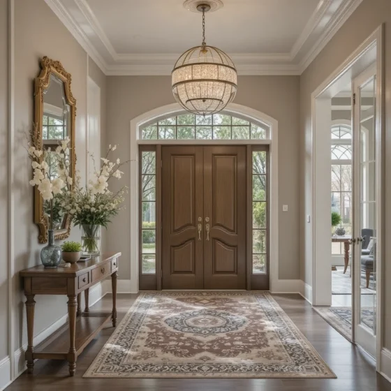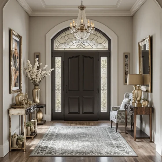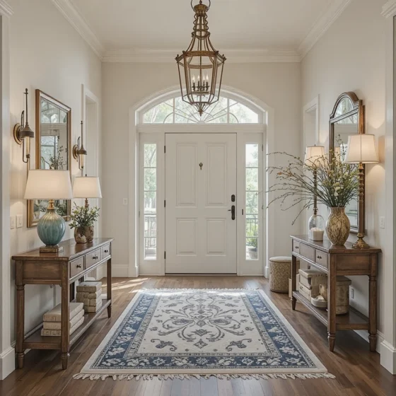 Vintage rugs, carved mirrors, or antique tables bring nostalgic character to your foyer. These timeless pieces add personality and refinement.