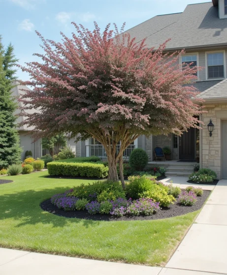 Plant a single ornamental tree in the center of your yard. A flowering tree adds seasonal beauty and shade. It naturally draws attention and anchors your overall landscape design.