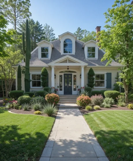 Create a drought-friendly display with succulents and cacti. These plants require minimal watering and offer unique shapes. This landscaping style fits modern and desert-inspired homes.