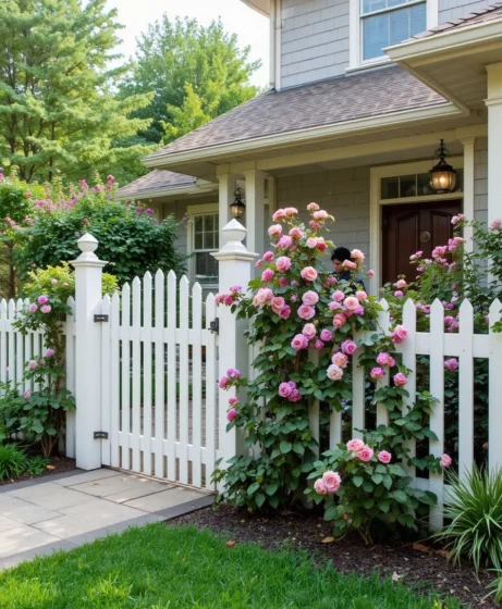 Add a white picket or wooden fence and grow climbing roses or vines. This gives your home a welcoming, storybook appearance. It also creates privacy without blocking sunlight.