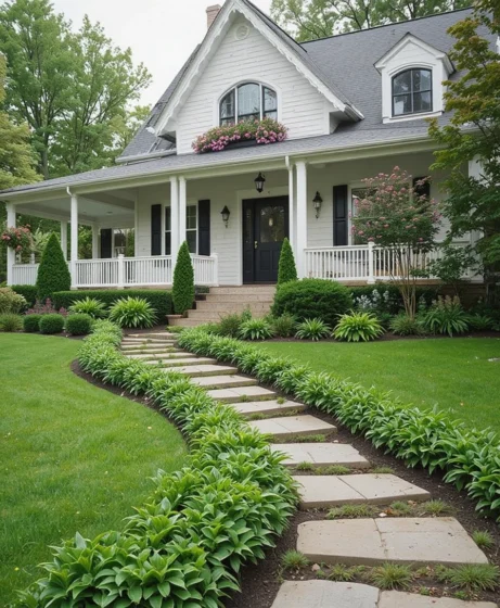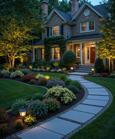 Install a gently curved walkway leading to your front door. Add solar-powered lights along the edges for both beauty and safety. A lit pathway enhances nighttime curb appeal and creates a welcoming vibe.