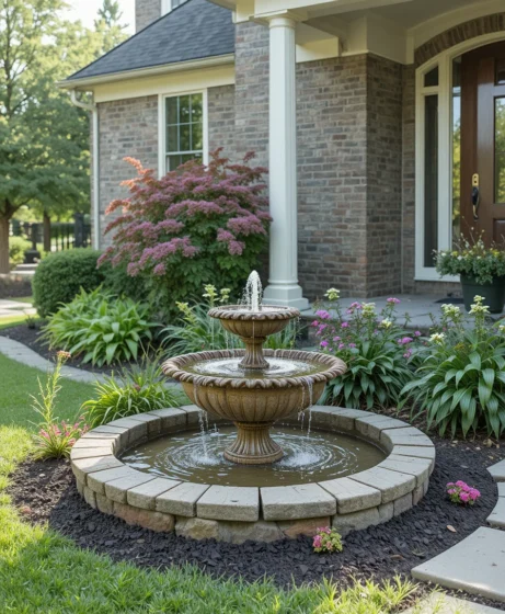 Install a compact fountain near the entrance. The sound of flowing water creates a calm and welcoming environment. It becomes a focal point that adds charm without taking too much space.