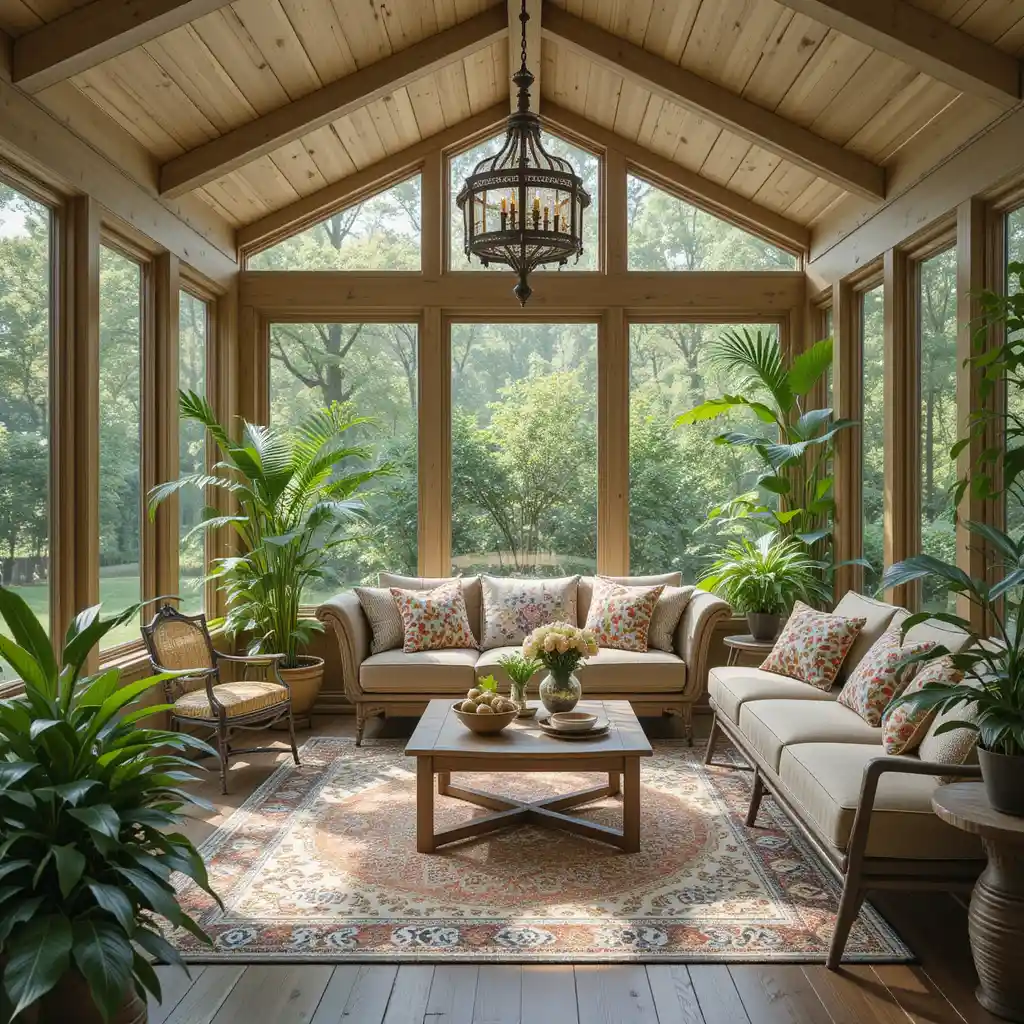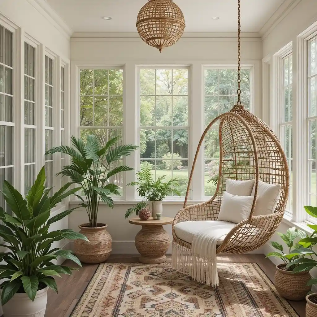 Incorporate wood accents, earthy colors, and leafy plants for a peaceful, organic feel. This makes the sunroom feel like an extension of the outdoors.