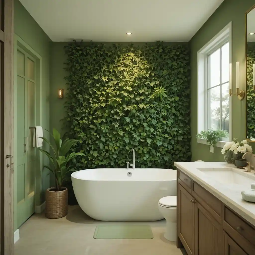 Install a vertical garden wall or greenery panel in one section of the bathroom. Use faux plants if lighting is low. It’s a bold, lush feature that’s sure to impress.