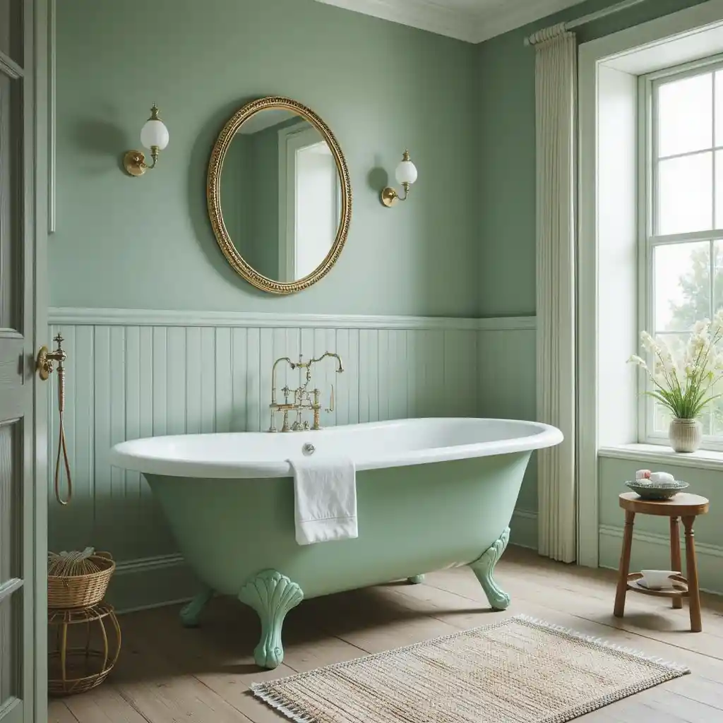 A mint green clawfoot bathtub can be a standout vintage piece. This soft tone adds charm and brightness to a space filled with neutrals or light wood.