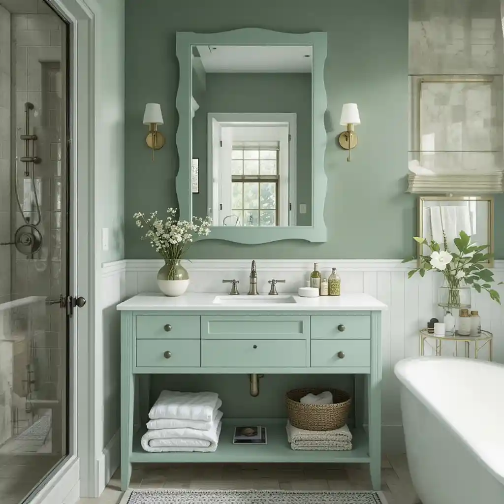 Give your mirror a makeover with a seafoam green painted frame. It adds a subtle pop of color right at eye level without overpowering the space.