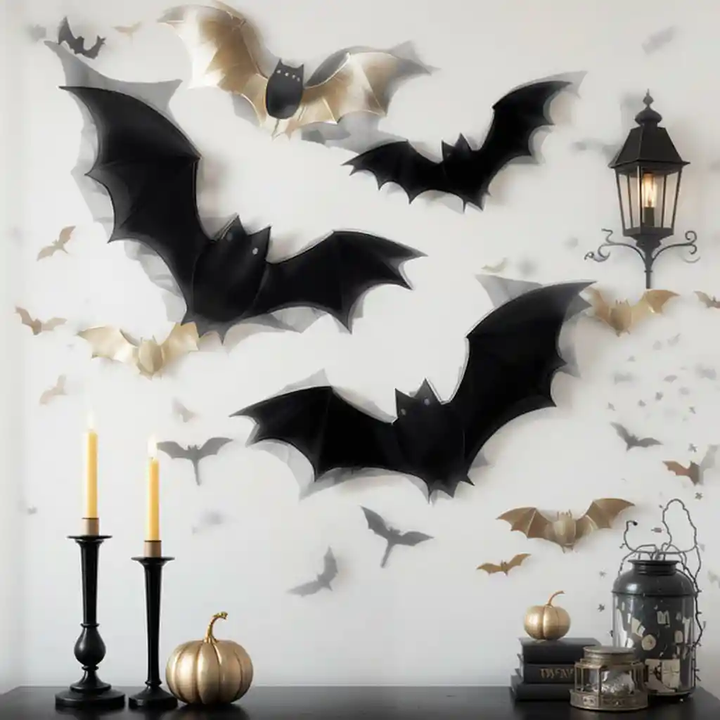 Cut bat shapes from gold cardstock or buy pre-made gold bat decals to stick on your walls. This creates an eye-catching flying bat effect that adds movement and style to your décor.