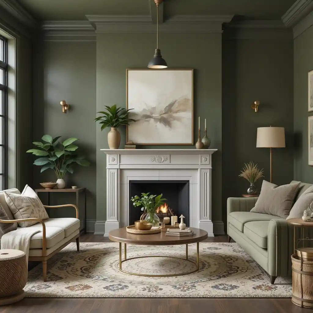 1. Deep Olive Walls for Cozy Sophistication