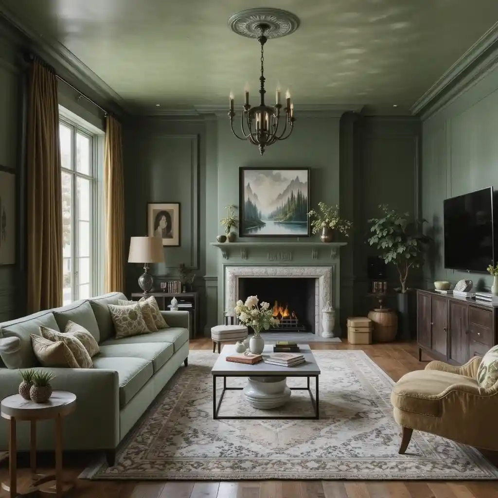 11. Sage Green Ceiling for Unexpected Impact