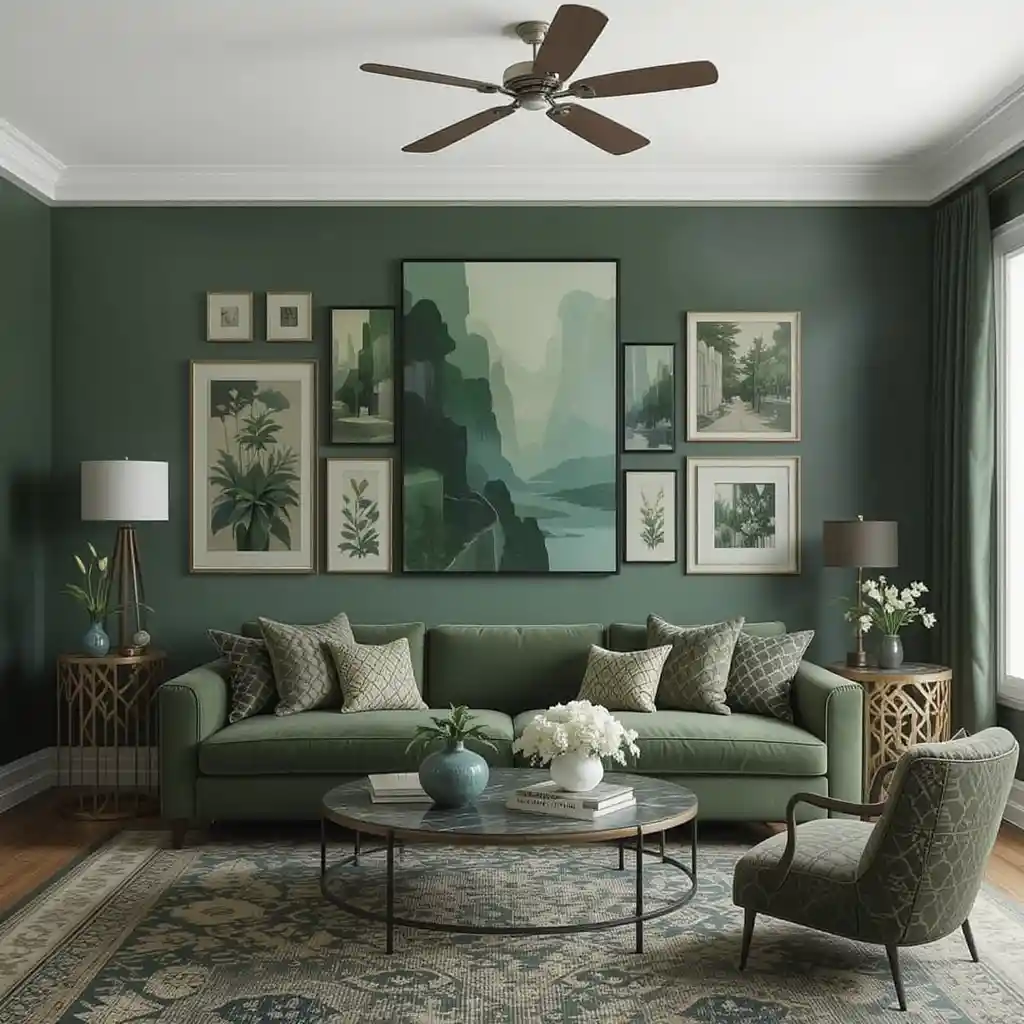 12. Gallery Wall with Green-Tinted Art