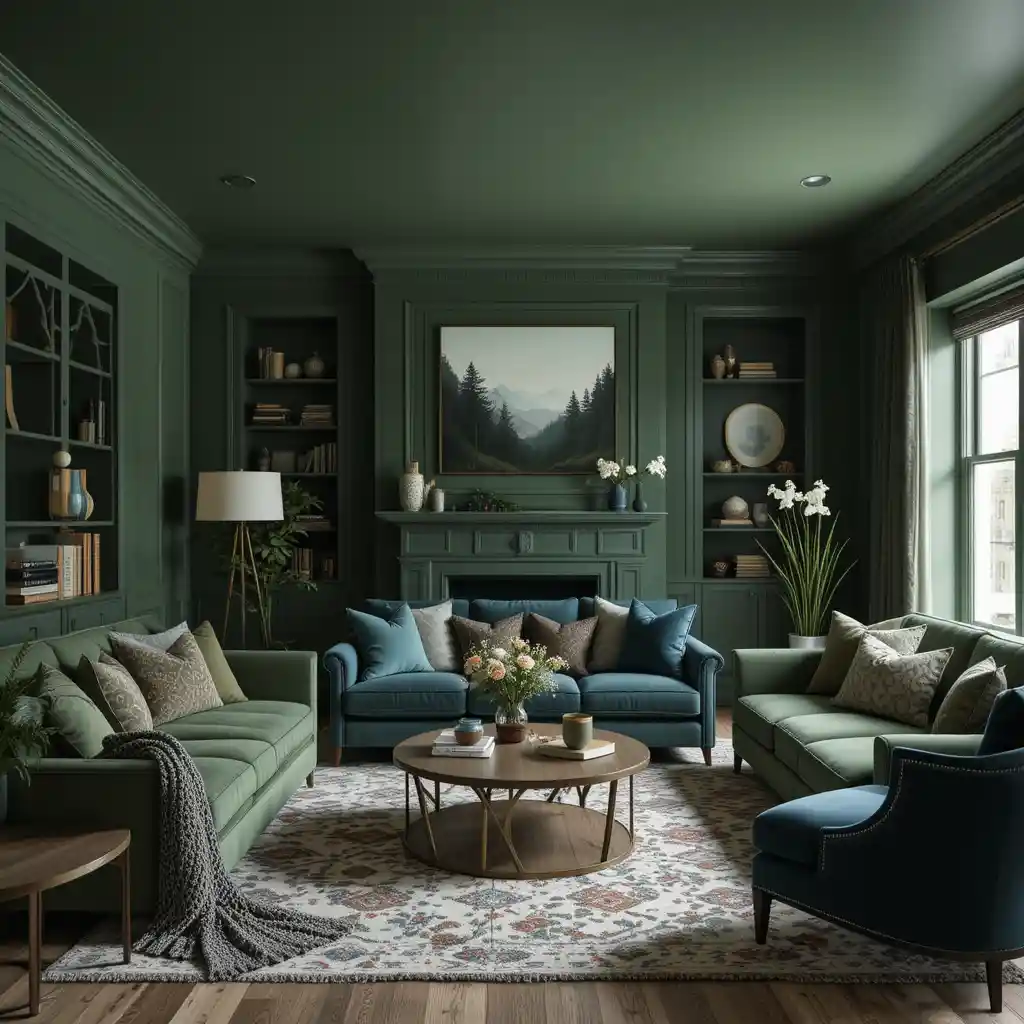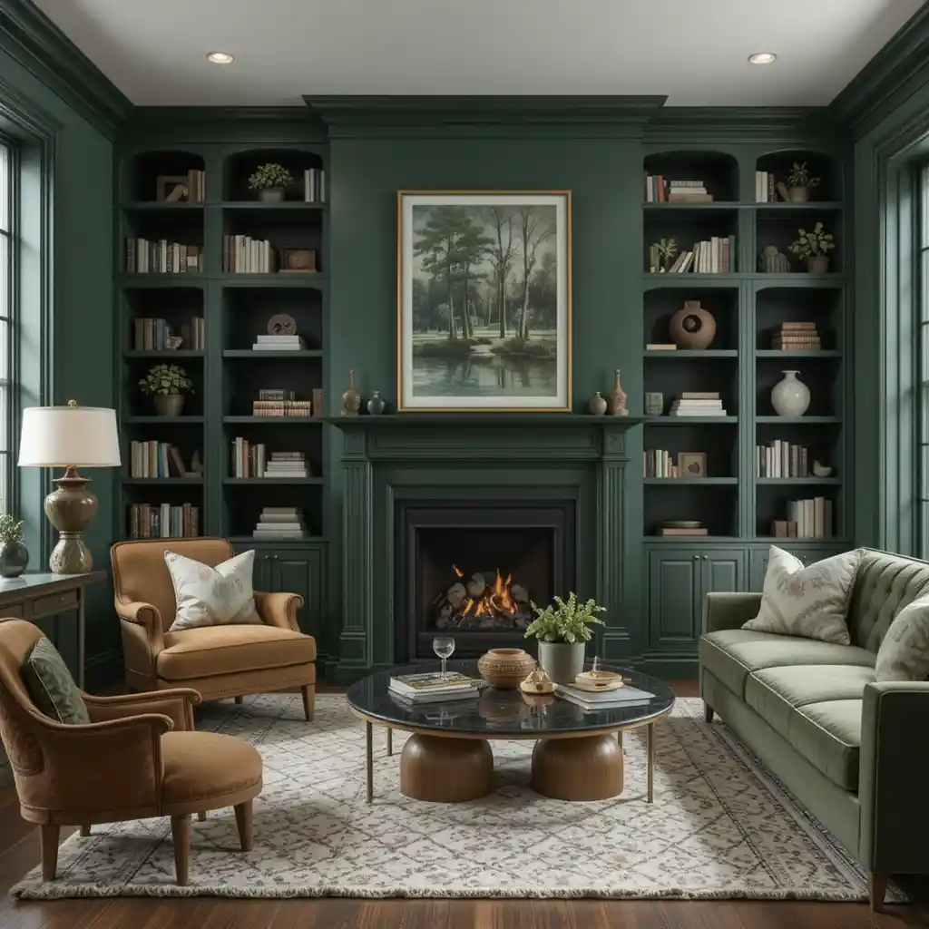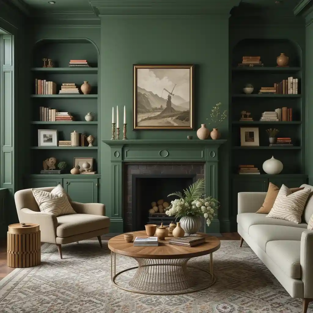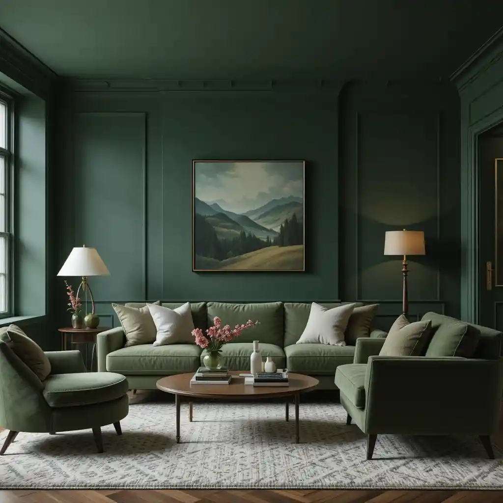 If you’re craving a living room that feels cozy, elegant, and full of personality, moody green is the color to explore.
