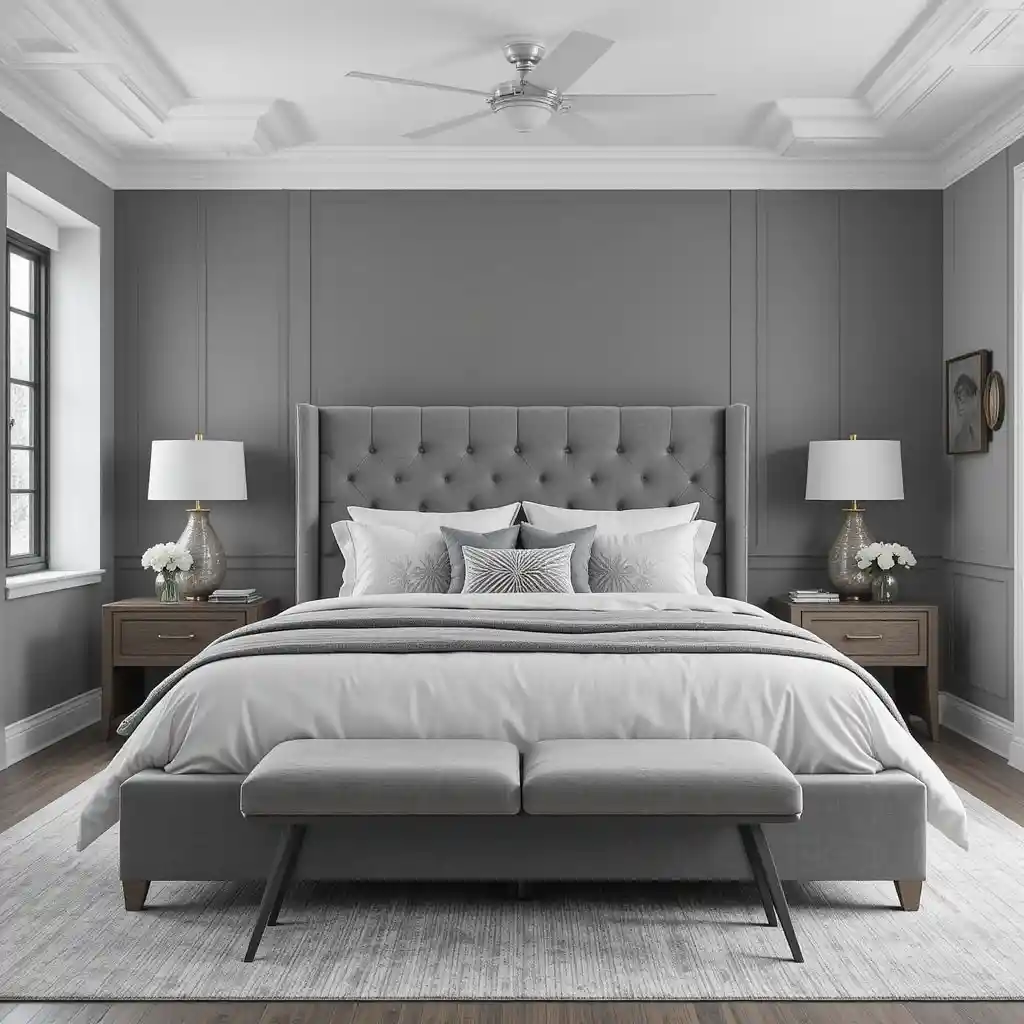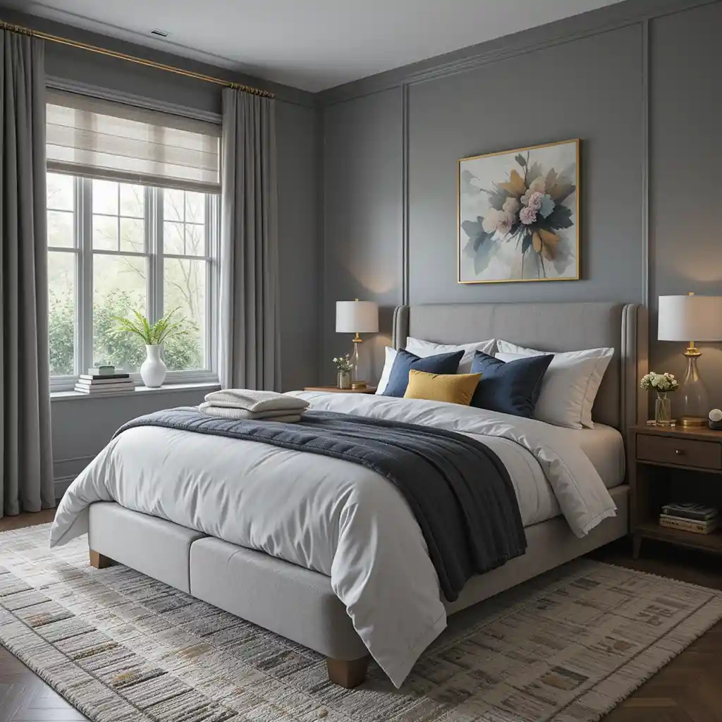 A plush grey headboard or fully upholstered bed brings comfort and luxury while blending seamlessly with any color scheme