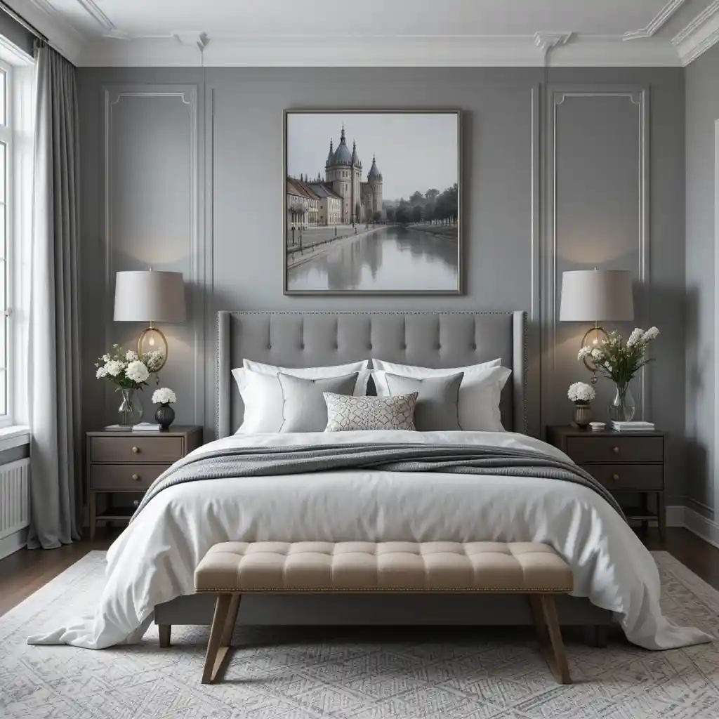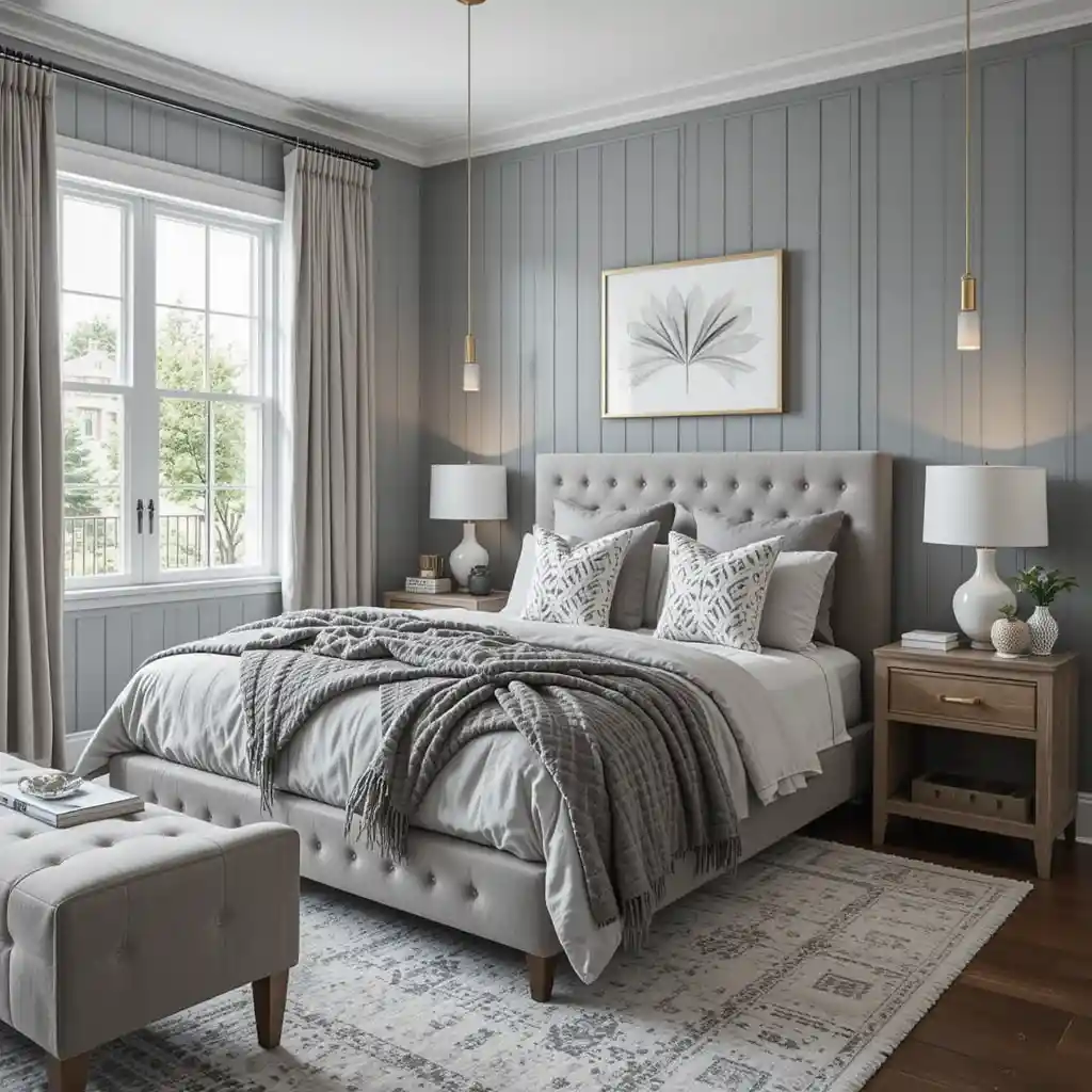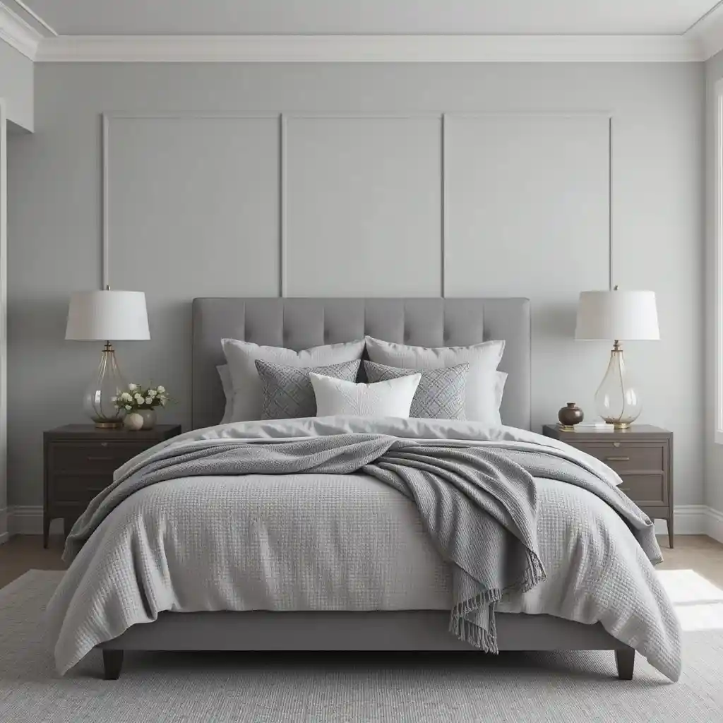 Finish your look with grey lampshades, hanging pendants, or wall sconces that match your overall palette while offering ambient lighting Grey Bedroom Ideas