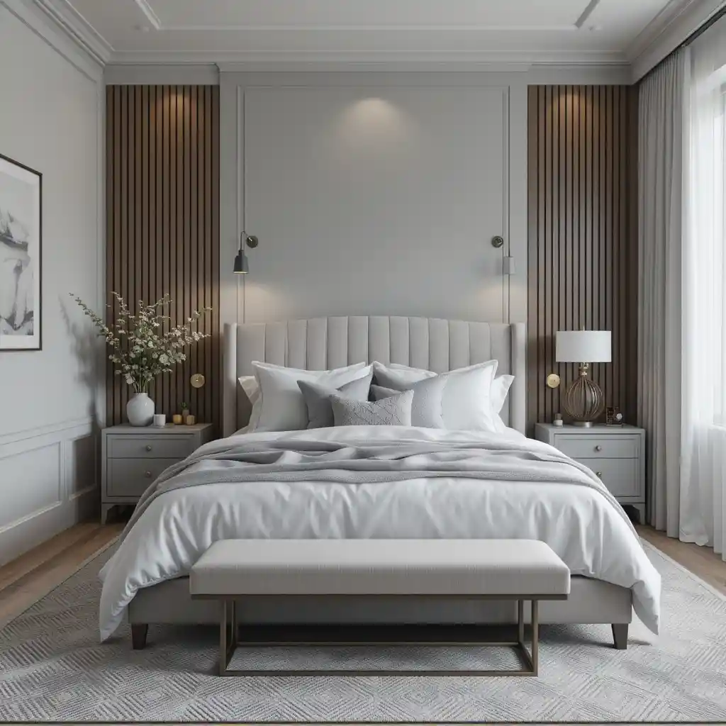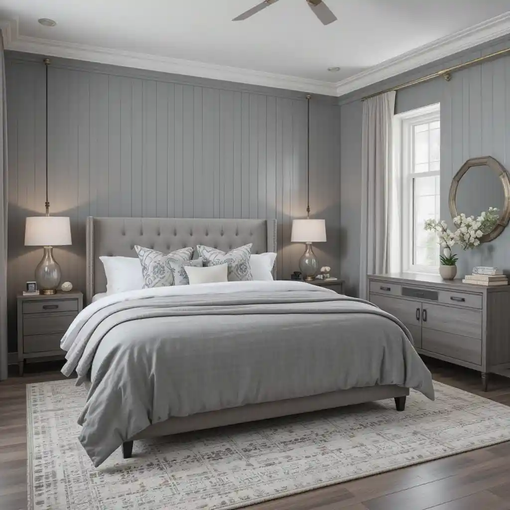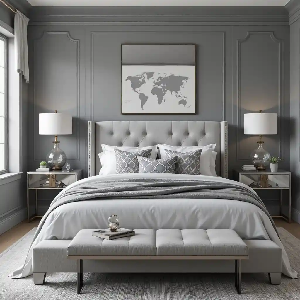 Finish your look with grey lampshades, hanging pendants, or wall sconces that match your overall palette while offering ambient lighting Grey Bedroom Ideas