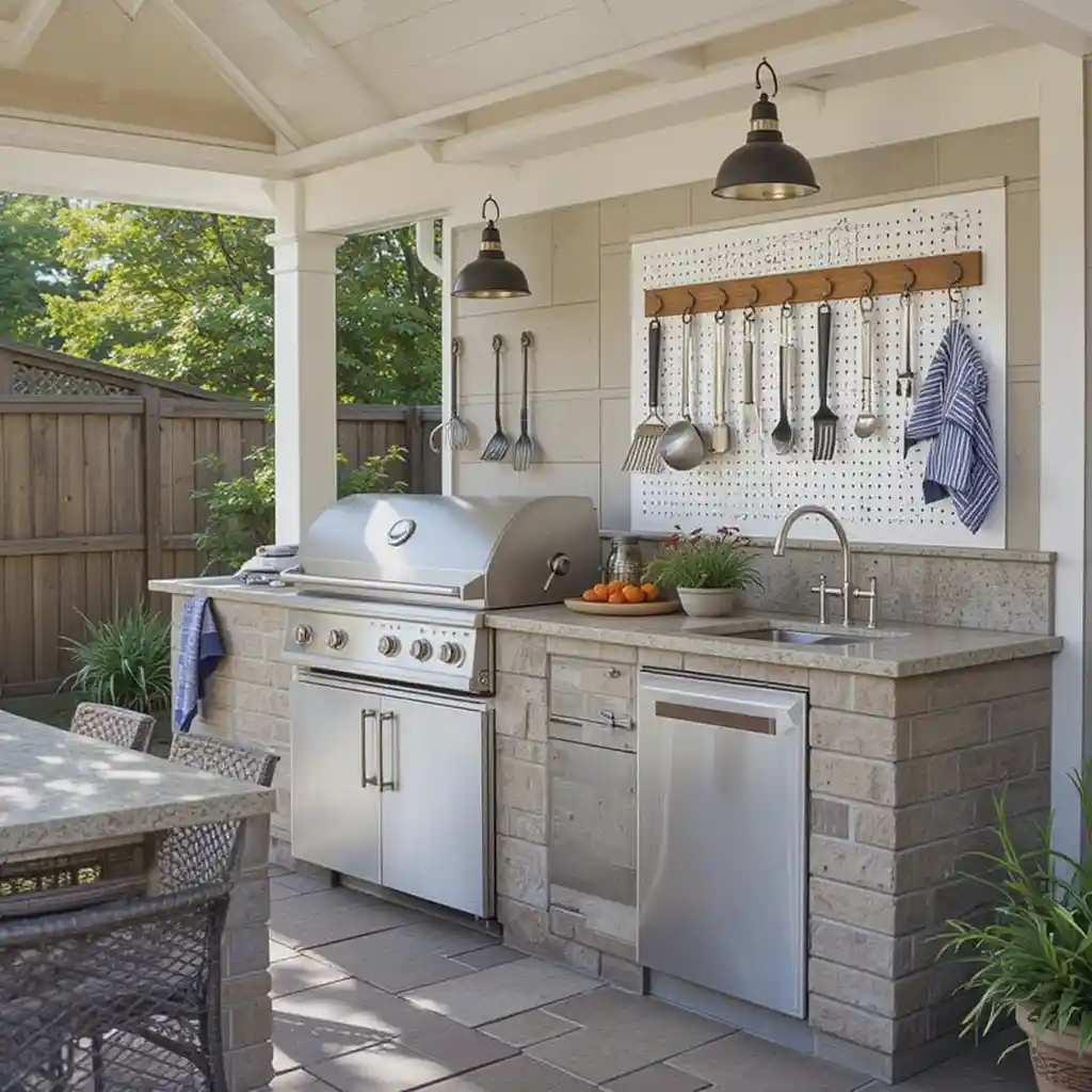 Install metal hooks or a pegboard to hang grilling tools, oven mitts, or towels, keeping everything within arm’s reach.