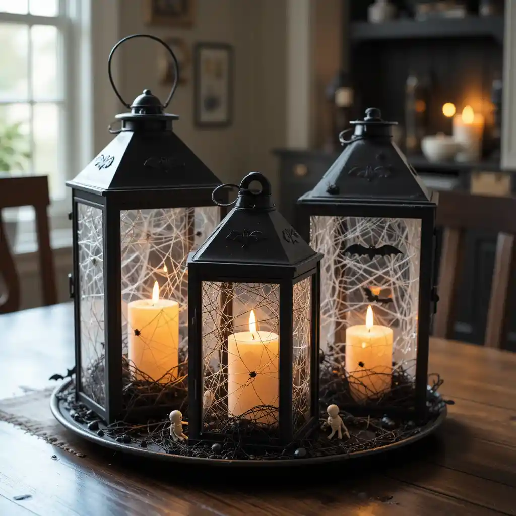 Place black lanterns filled with LED candles and faux cobwebs in the middle of your table. Add tiny bats or skeleton figurines for detail.
